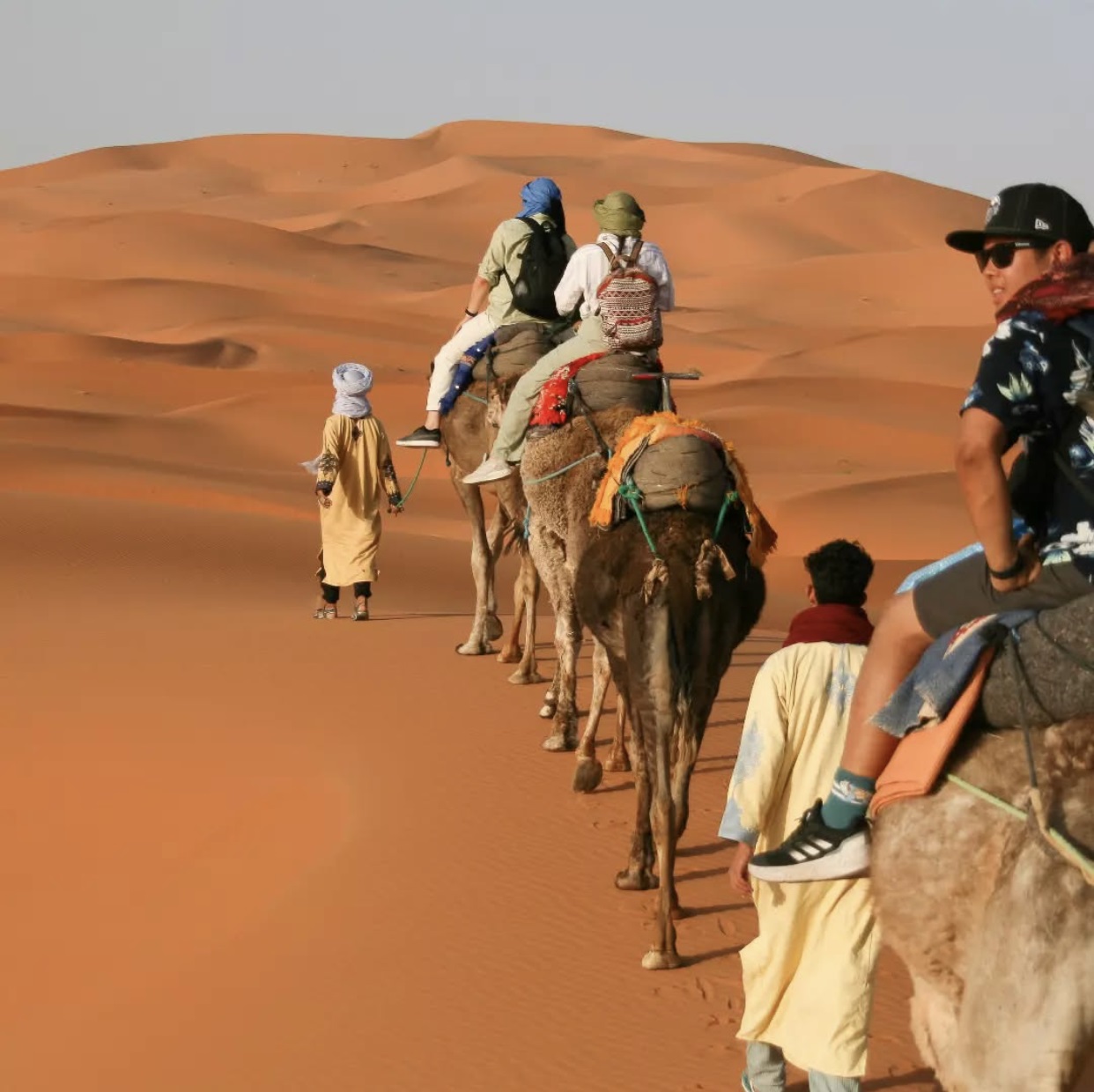 • Paseo en dromedario al atardecer por las dunas del desierto de Merzouga.