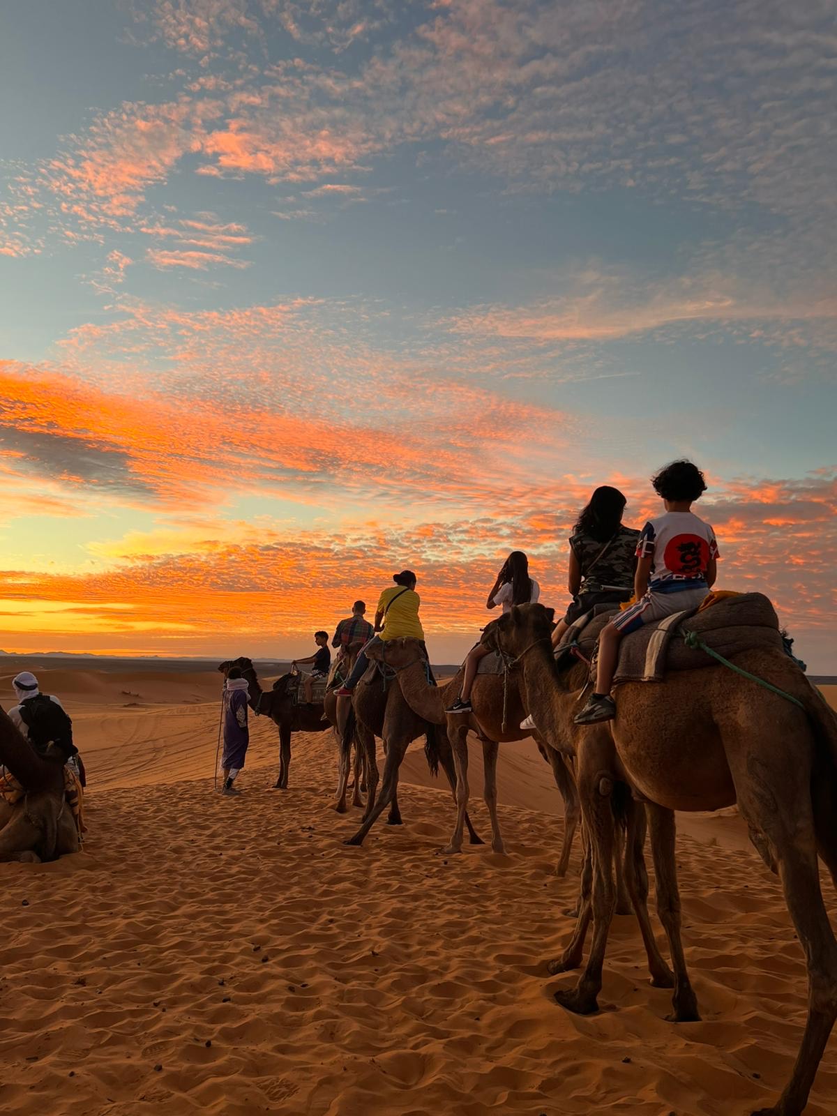 La magia del desierto no termina cuando el sol se oculta. Súbete a tu dromedario y acompáñanos a vivir un atardecer único sobre las dunas. Con el cielo cambiando de colores y la tranquilidad que se respira, sentirás que el tiempo se detiene por un momento.