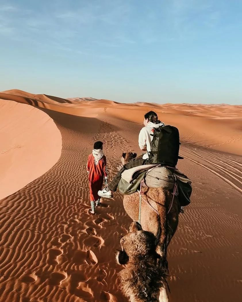 • Paseo en dromedario durante el día por las dunas del desierto de Merzouga.