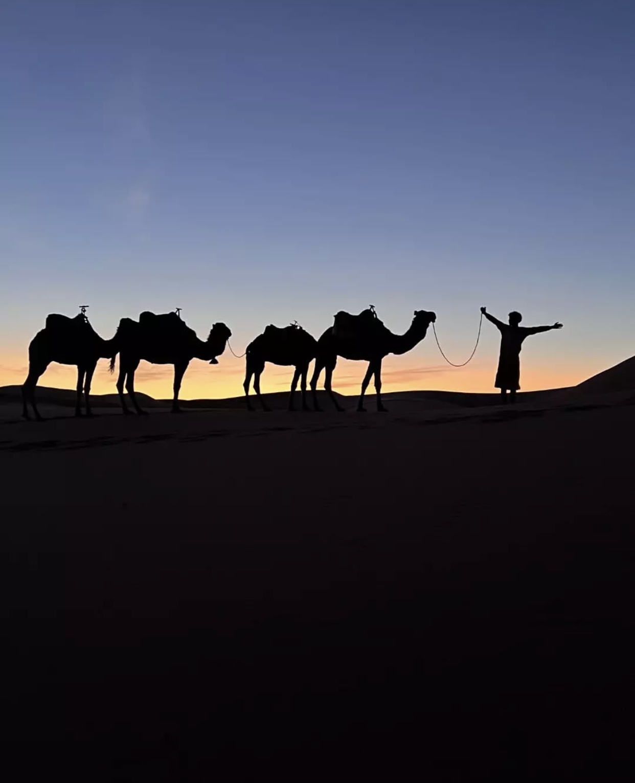 El paseo nocturno en dromedario por el desierto de Merzouga es una experiencia tranquila y agradable para recorrer las dunas y disfrutar del ambiente del Sahara cuando cae la noche. Durante la ruta podrás ver el cielo lleno de estrellas, sentir la calma del desierto y vivir la noche en Merzouga desde otra perspectiva. Es una actividad accesible para cualquier viajero que quiera disfrutar del silencio, la luz de las estrellas y la sensación de estar en pleno Sahara.