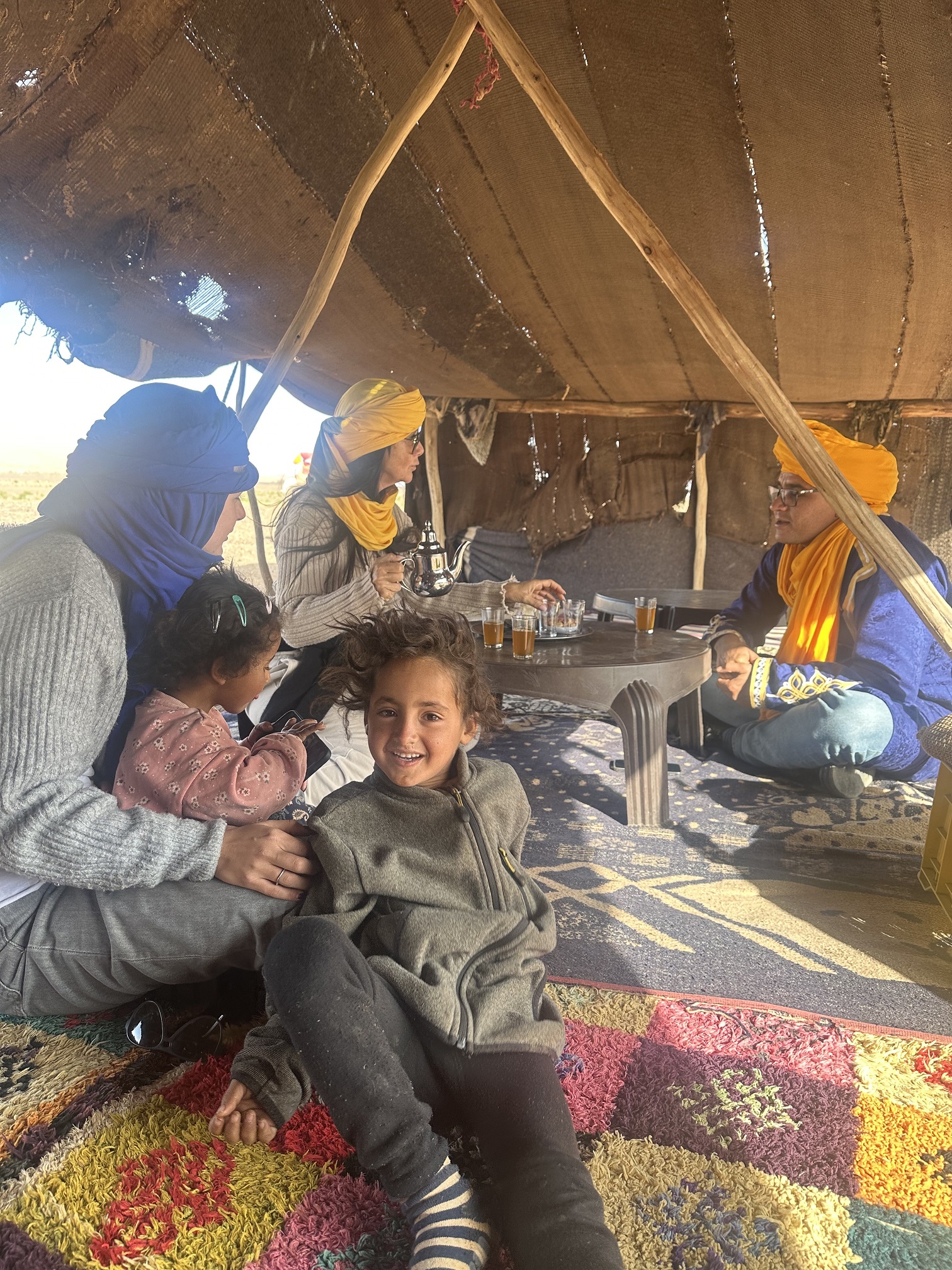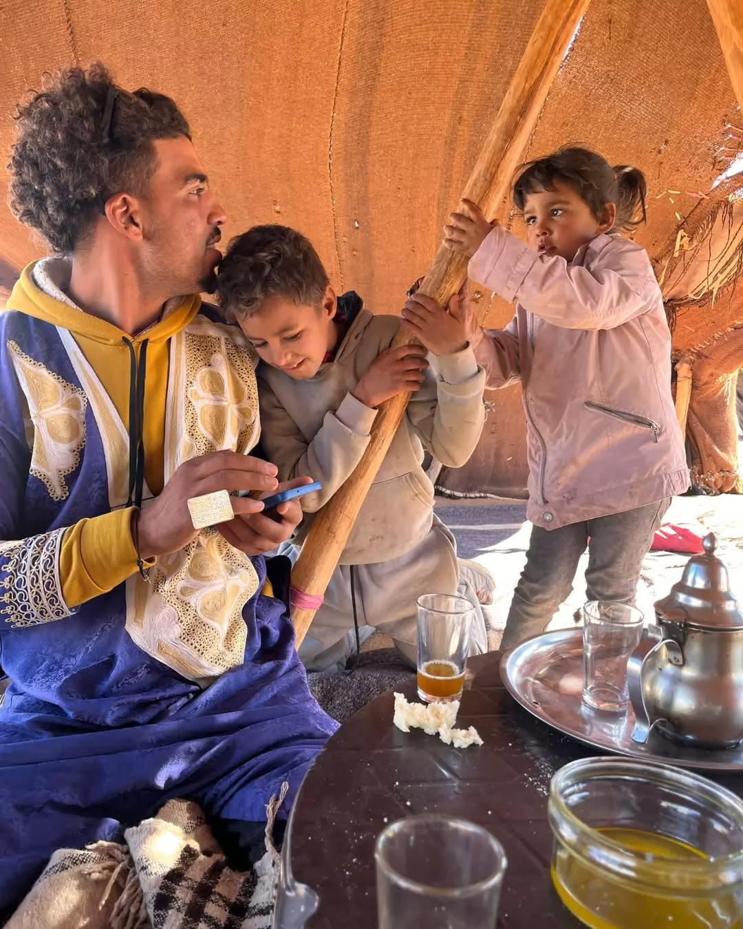 La visita a las familias nómadas del desierto de Merzouga es una oportunidad para conocer de primera mano su forma de vida y entender cómo se organiza la vida en el Sahara. Durante el encuentro podrás conversar con ellos, ver sus haimas y descubrir su día a día de una manera sencilla, respetuosa y auténtica. Es una experiencia tranquila que permite conectar con la cultura local y comprender mejor la realidad del desierto y sus tradiciones.
